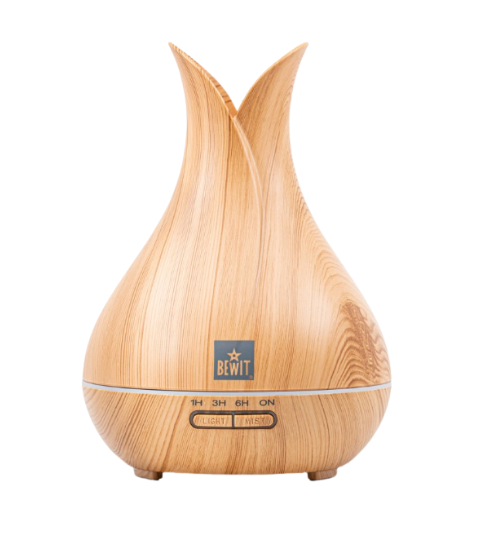 Bewit Aroma difuzér Carafe 400 RC - ultrasonický aroma difuzér s objemem nádoby 400 ml, automatické vypnutí, 7 nastavitelných barev LED podsvícení a časovač mlhoviny, doba provozu až 7 h, doporučená velikost místnosti do 40 m², barva difuzéru světlé dřevo. Pro větší pohodlí vybaven dálkovým ovladačem.