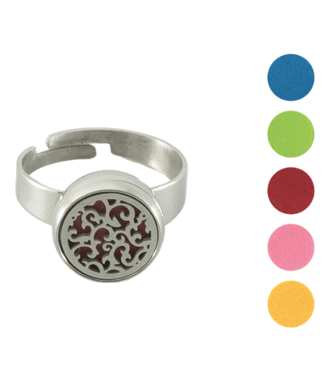 Stačí otevřít difuzér prstýnku, nakapat 2–3 kapky svého oblíbeného esenciálního oleje na jednu z vyjímatelných podušek, zavřít a užívat si vůni, která se uvolňuje po celý den.