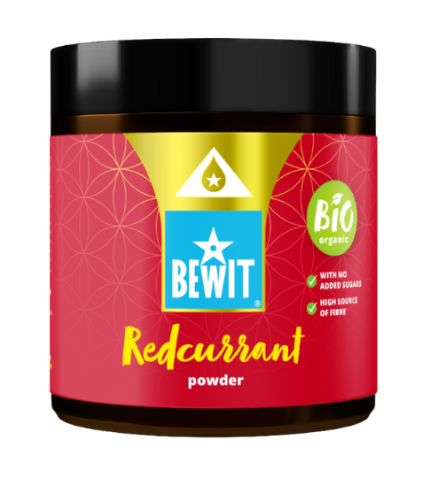 Doplněk stravy Bewit Červený rybíz lyofilizovaný - prášek, BIO RAW - Doplňte svůj jídelníček o další zdravou lahůdku s bohatým zdrojem vlákniny, která podpoří vaši vitalitu a štíhlou linii.