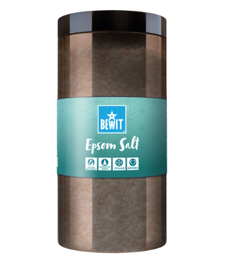 Doplněk stravy Bewit Epsomská sůl 1 kg - k vysokému obsahu hořčíku a síry mimořádně prospěšná. V porovnání se solí klasickou má výraznou hořkou chuť. Obsažené minerály se velmi snadno vstřebávají přes kůži. Proto je nezbytnou součástí relaxačních koupelí. Uvolněte a zregenerujte své unavené tělo v horké koupeli. Připravte si tělový peeling na míru svým potřebám. Nenahraditelná součást mnohých očistných rituálů.