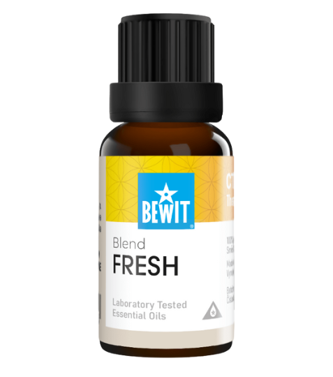 Bewit Fresh 5 ml - naskočte na přílivovou vlnu energie a dobré nálady. Pohodová esenciální směs BEWIT Fresh vám s lehkostí podá pomocnou ruku. Vůně: citrusová, svěží.