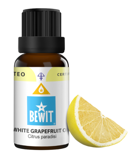 Bewit Grapefruit bílý 5 ml - nechte se jiskřivou energií grepu vystřelit na prosluněné písečné pláže Goa a Karibiku. Vůně: svěží, trpká, kyselá, květinová, nasládlá. Známý také jako: citrus rajský. Dobijte si baterky energií jižního slunce. Napomůže při emočním oddávání se jídlu, sladkostem a ethanolu. Pravidelná masáž hezky rozproudí a připraví do plavek. Pročistí a osvěží váš domov.