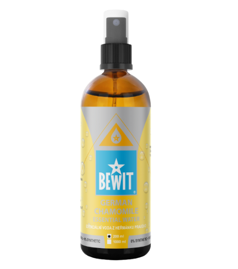 Bewit Hydrolát z heřmánku pravého 200 ml - přivolejte si jej s naší 100% čistou a přírodní esenciální vodou z heřmánku pravého, která uklidní i ty nejnepříjemnější projevy vaší citlivé pokožky. Je dokonale lehký, snadno se vstřebává. Voní jemnou, relaxační, bylinnou vůní. Poskytuje šetrnou péči. Blahodárně působí i na pokožku těch nejmenších. Je vhodná pro každodenní péči. Vyrovnává pH pokožky. Vaši pleť tonizuje, hydratuje a zároveň vytváří skvělý základ pro následnou BEWIT péči. Zintenzivní účinek BEWIT Pleťových sér, BEWIT Šlehaných balzámů a BEWIT Tělových sér.