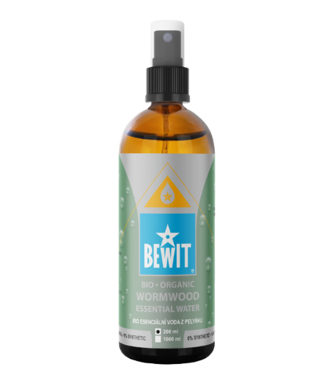 Bewit Hydrolát z pelyňku, BIO 200 ml - 100% čistý a přírodní hydrolát z pelyňku možná působí hořkým dojmem, ale po jejím nanesení vám svými účinky vykouzlí sladký úsměv na tváři. Antioxidační účinky pelyňkového hydrolátu mají blahodárný vliv na obnovu pleti i pokožky. Je dokonale lehká a snadno se vstřebává. Zneutralizuje nežádoucí pachy a zároveň příjemně osvěží.