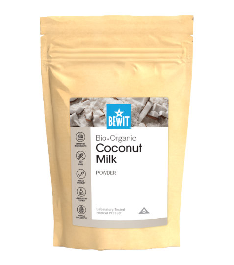 Doplněk stravy Bewit Kokosové mléko - prášek, BIO 300 g - náš prášek z kokosového krémového mléka si jednoduše zamilujete. Je sametově jemný a voní po kokosu. V horkém i studeném nápoji se velmi rychle rozpustí. Polévky, omáčky i tradiční kari příjemně zjemní. Veganské dezerty, pudinky a zmrzliny dovede k dokonalosti.