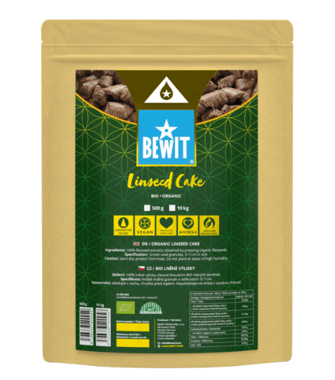 Doplněk stravy Bewit Lněné výlisky, BIO 500 g - vysoce výživný vedlejší produkt lisování lněného oleje v BIO kvalitě, který je perfektním zdrojem rostlinných bílkovin, potřebné vlákniny a mnoha dalších prospěšných látek.