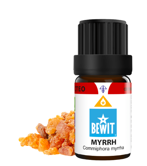 Bewit Myrha 5 ml - esenciální olej Myrha v duševní oblasti jemně zklidňuje a přináší hluboký pokoj. Vyznačuje se sladkou a pryskyřičnou vůní zemitého charakteru. I proto je jedním ze základních esenciálních olejů olejů na obavy, duševní rozrušení a myšlenkové zahlcení. Má vyrovnávací, čistící a uzemňovací vliv na intelekt. Esenciální olej z myrhy je vhodný také při meditaci.
