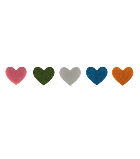 5 ks plstěných podušek určených do přívěsku ve tvaru srdce