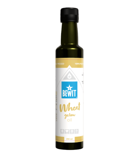 Doplněk stravy Bewit Olej z pšeničných klíčků 250 ml - vzhledem k vysokému obsahu esenciálních omega-3 a 6 mastných kyselin a dalších nutričně významných látek je olej z pšeničných klíčků skutečným pokladem pro celou rodinu. Disponuje příjemnou, jemně obilnou chutí, pro kterou jej můžete přidat do salátů, RAW dezertů a kteréhokoliv studeného pokrmu.