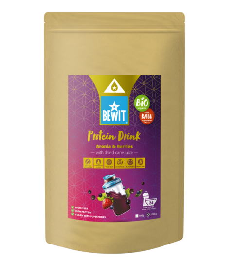 Bewit Proteinový nápoj aronie s černým rybízem, borůvkou a jahodou se sušenou třtinovou šťávou, BIO 1200 gskladem1 328 Kč/ ks1 097,52 Kč bez DPH