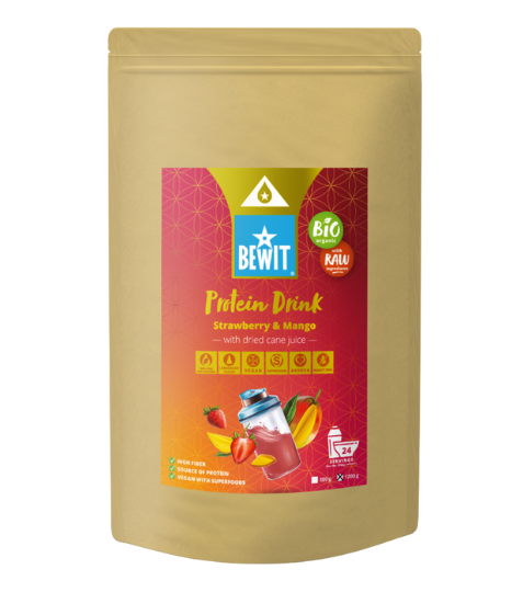 Bewit Proteinový nápoj, jahoda a mango se sušenou třtinovou šťávou, BIO 1200 gskladem1 328 Kč/ ks1 097,52 Kč bez DPH