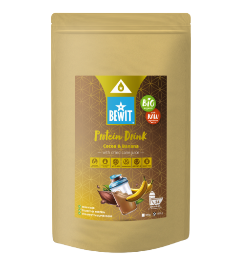 Bewit Proteinový nápoj kakao s banánem se sušenou třtinovou šťávou, BIO 1200 gskladem1 328 Kč/ ks1 097,52 Kč bez DPH