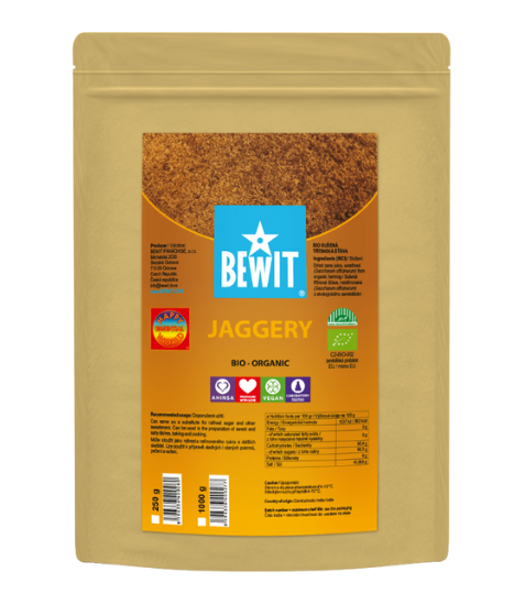 Doplněk stravy Bewit Třtinová šťáva sušená BIO, nerafinovaná (Panela, Rapadura) 250 g - BIO sušená třtinová šťáva, známá také jako Rapadura či Panela, je vynikajícím, 100% přírodním sladidlem. Díky tradičnímu způsobu získávání a vynechání procesu rafinace si zachovává maximální množství všech tělu prospěšných látek, bohatou karamelovou barvu a tolik příjemný medově-ovocný nádech. Osladit si s ní můžete kaše, jogurty, pudinky a RAW dezerty. Je vhodná i na pečení a vaření.