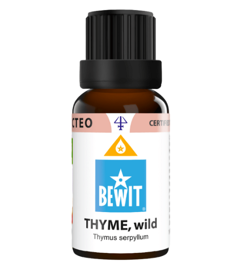 Bewit Tymián horský (Mateřídouška) 5 ml - aroma tymiánu je teplé, bylinné, výrazné, svěží a léčivé. Povzbuzuje odvahu, úsilí a morálku.