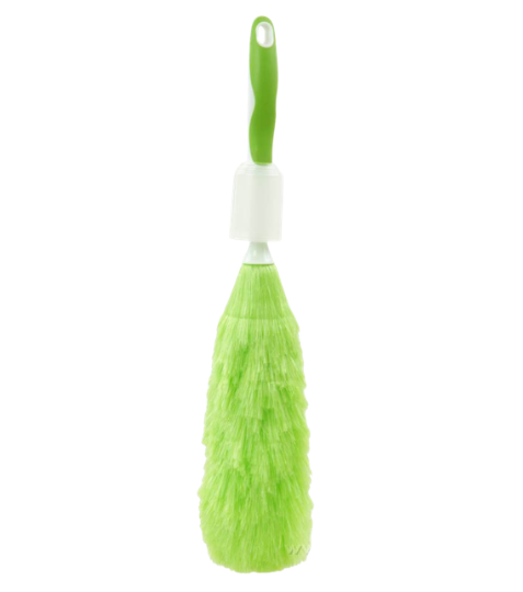 Konstrukce: Obsahuje pevnou rukojeť z odolného plastu a výsuvný ochranný kryt, který slouží k bezpečnému uložení a chrání vlákna před znečištěním v době, kdy prachovku nepoužíváš.