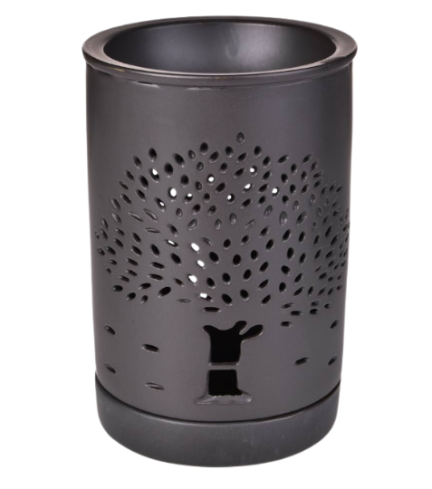 Keramická aromalampa ARBORA s hlubokou miskou a jemným motivem stromu. Matná černá glazura a prosvítající světlo vytváří působivou atmosféru klidu. Doporučujeme kombinovat s exkluzivními vosky a esencemi PARFUMIA. Silný a klidný jako strom… Aromalampa ARBORA se symbolem stromu života přináší do vašeho domova pocit zakořenění, harmonie a vnitřní síly. Jemné světlo, které proniká dekorativním výřezem, kreslí na stěny tiché obrazy přírody a navozuje hluboký pocit klidu. Její matně černá keramika a hluboká miska činí z této lampy nejen stylový doplněk, ale také ideálního společníka pro dlouhé chvíle relaxace.