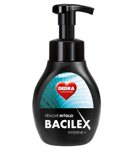 BACILEX HYGIENE+ – pěnové mýdlo s přírodními rostlinnými kyselinami a Aloe Vera. Má antimikrobiální účinek, osvěžující citrusovo-bylinnou vůni a vydrží až 3× déle než běžná mýdla.