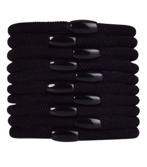 Sada 10 ks černých gumiček do vlasů BEAUTY. Pevně drží účes, netahají a nelámou vlasy. Vhodné pro každodenní nošení i sportovní aktivity. Praktické a univerzální gumičky pro všechny typy vlasů.