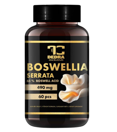 Doplněk stravy. Boswellia serrata (490 mg, 65 % boswellových kyselin) je standardizovaný rostlinný extrakt tradičně využívaný v ajurvédě. Boswellia serrata podporuje kloubní komfort a přispívá k normální funkci pohybového aparátu. Praktické balení 60 kapslí je vhodné pro každodenní užívání jako součást aktivního životního stylu.