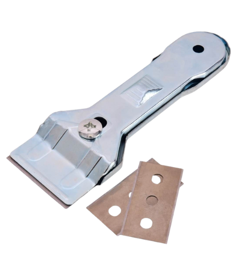 Škrabka na sklokeramické desky pro šetrné odstranění připálenin a nečistot. Včetně 2 náhradních břitů zdarma. Pro bezpečné a efektivní čištění varné desky bez poškození povrchu.