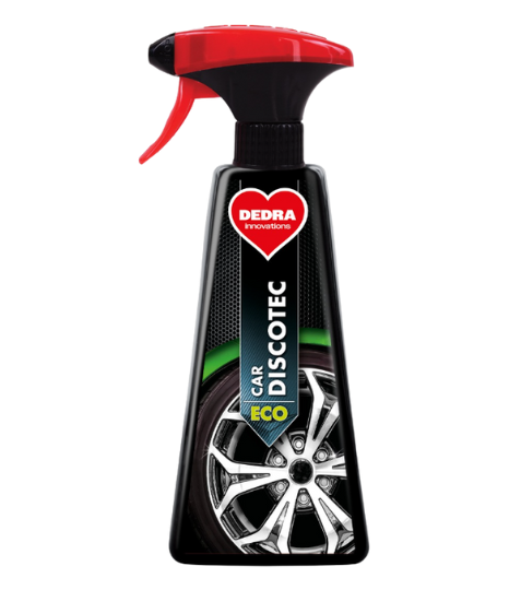 DISCOTEC je koncentrovaný čisticí prostředek s vysokou odmašťovací schopností. Efektivně a rychle rozpouští brzdový prach, zbytky gumy, olejové usazeniny a běžnou silniční špínu. Jeho složení je navrženo tak, aby proniklo i do těžko přístupných míst členitých alu kol (elektronů). Navrací diskům jejich původní čistotu a lesk bez nutnosti namáhavého mechanického čištění.