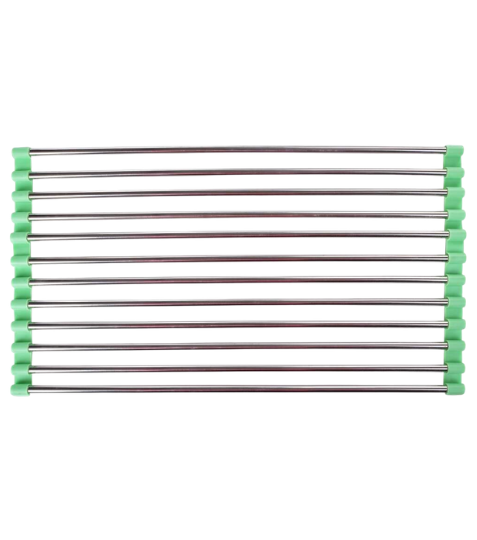 Rolovací odkapávač GENIUS (50 × 28 cm) z nerezových tyčinek se silikonovými boky umožňuje odkládat ovoce, zeleninu i nádobí přímo nad dřez. Stabilní, skládací a prostorově úsporný – po použití se jednoduše sroluje do šuplíku. Hledáš chytré řešení, kam dát umytou zeleninu nebo nádobí – aby linka zůstala suchá? Rolovací odkapávač GENIUS položíš přímo nad dřez, takže voda pohodlně odkape tam, kam má – ne na pracovní plochu! Kombinace nerezových tyček a protiskluzových silikonových pásků zajišťuje stabilitu i při větší zátěži. Vhodný na ovoce, zeleninu, hrnky nebo talíře, a po použití ho jednoduše sroluješ a uklidíš do šuplíku. Praktické, elegantní a prostorově úsporné řešení moderní kuchyně.