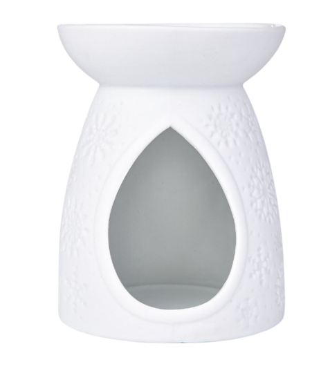 Keramická aromalampa GLACIA s embosovaným vzorem sněhových vloček a matnou bílou glazurou jemně prosvítá po zapálení svíčky. Elegantní zimní doplněk. Doporučujeme s vonnými vosky a esencemi PARFUMIA.
