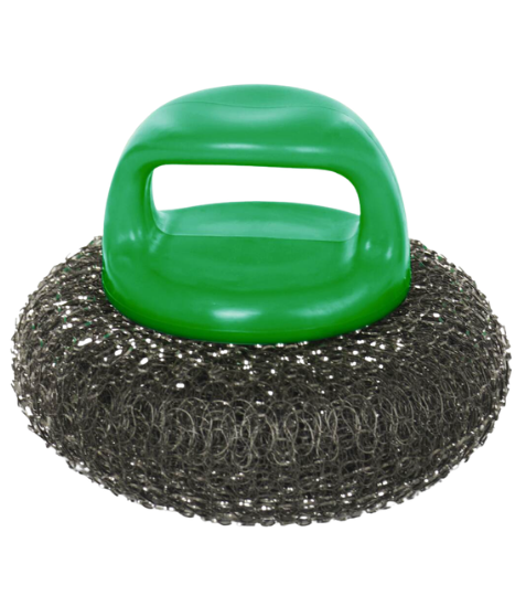 Tato XL kovová drátěnka s plastovým držadlem ti usnadní čištění připálenin, mastnoty i zaschlých nečistot na nádobí a kuchyňských površích.