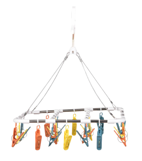 Otočný obdélníkový kolotoč KOLÍČKOVNÍK s 20 barevnými kolíčky šetří místo a usnadňuje sušení drobného prádla. Zavěšení na uzavřený háček brání odfouknutí větrem. Vhodný dovnitř i ven – ponožky, spodní prádlo, punčochy uschnou rychleji díky otáčení 360°.