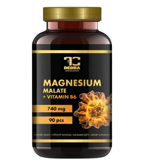 Doplněk stravy. Kombinace hořčíku v malátové formě a aktivního vitaminu B6. Hořčík i B6 přispívají k normálnímu energetickému metabolismu, činnosti nervové soustavy, psychické činnosti a ke snížení míry únavy a vyčerpání. Malátová forma je dobře využitelná a vhodná pro denní užívání. Balení obsahuje 90 kapslí.