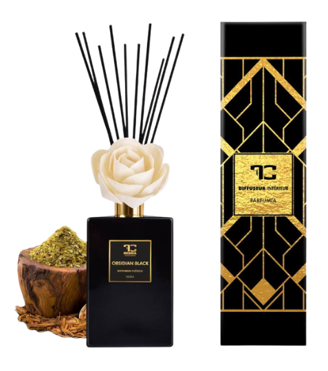• Dedra OBSIDIAN BLACK difuzér s FLOW květinou & tyčinkami PARFUMIA  500 ml