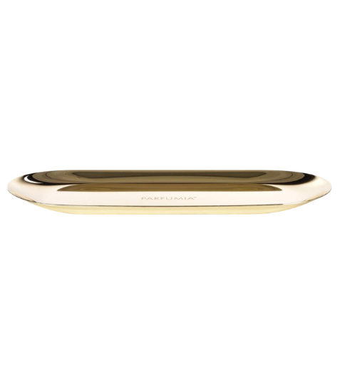 Elegantní zlatý podnos PARFUMIA z nerezové oceli s luxusní povrchovou úpravou. Stylové místo pro odkládání svíček, zhášedla a nůžek. Dodáváno v sametovém sáčku. Praktický i dekorativní doplněk pro milovníky svíček.