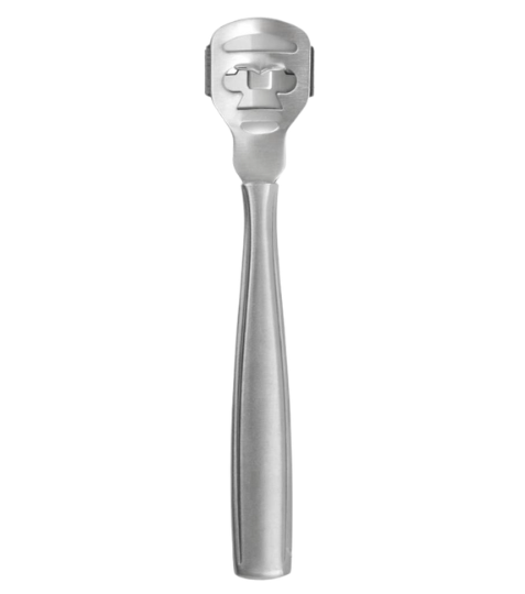 PATOHOBLÍK z nerezové oceli s 10 výměnnými břity. Účinně odstraňuje ztvrdlou a zrohovatělou kůži na patách. Rychlé a hygienické řešení pedikúry v pohodlí domova.