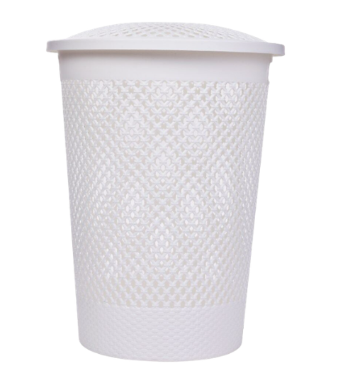 Stylový perforovaný koš na prádlo WASH STATION (⌀44 cm, v 59 cm) je vyroben z odolného plastu, snadno se čistí a dobře větrá. Má odnímatelné víko a boční madla pro pohodlné přenášení. Praktické a elegantní řešení do koupelny, ložnice i prádelny.
