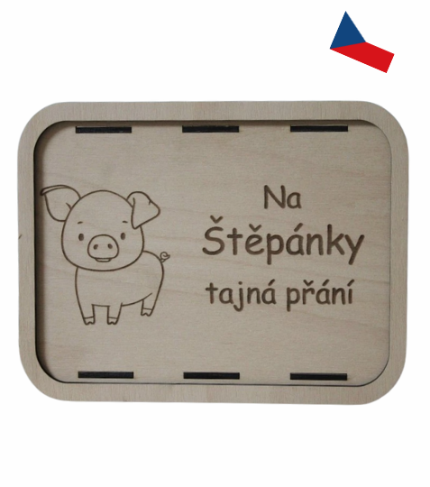 Dřevěná pokladnička se jménem dítěte pomáhá budovat první finanční návyky. Skvělý dárek, milá dekorace a motivace ke spoření s gravírováním na přání.