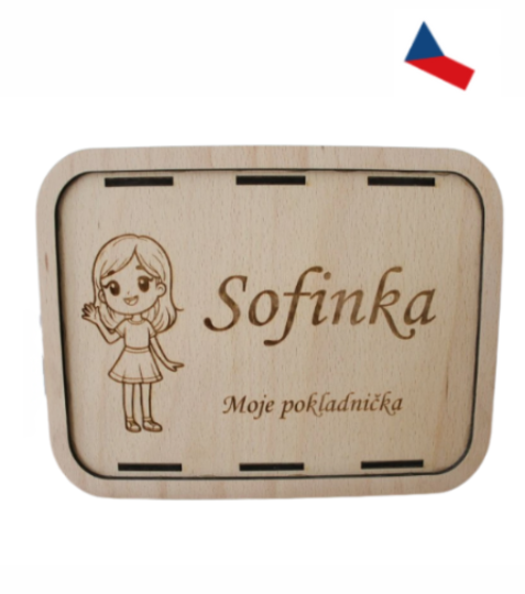 JH WoodArt Dřevěná dětská pokladnička s vlastním jménem - Holčička