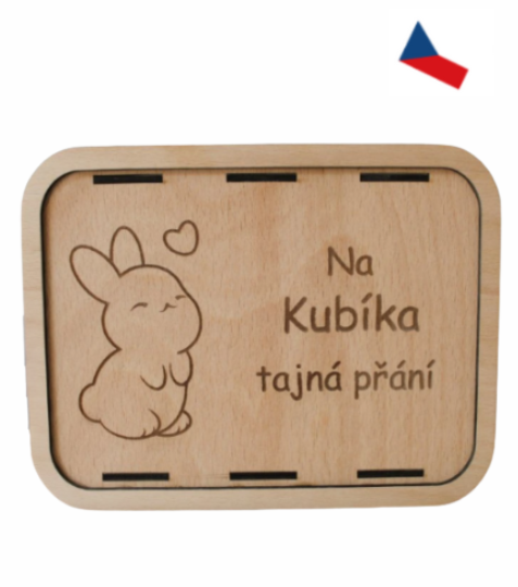 JH WoodArt Dřevěná dětská pokladnička s vlastním jménem - Zajíček