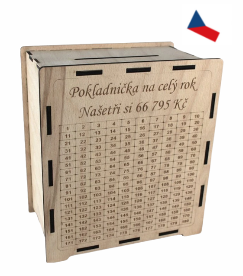 Přinášíme vám originální a praktický způsob, jak každý den ušetřit a splnit si své sny! Pokladnička na celý rok s cílovou částkou 66 795,-Kč je skvělým doplňkem do vašeho domova i ideálním dárkem.