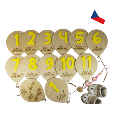 JH WoodArt Dřevěné milníkové kartičky - Balónek 13 ks ŽlutéSkladem593 Kč/ ks490,08 Kč bez DPH