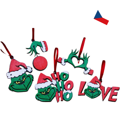 JH WoodArt Dřevěné vánoční ozdoby Grinch – originální dekorace pro vaše Vánoce Grinch sada