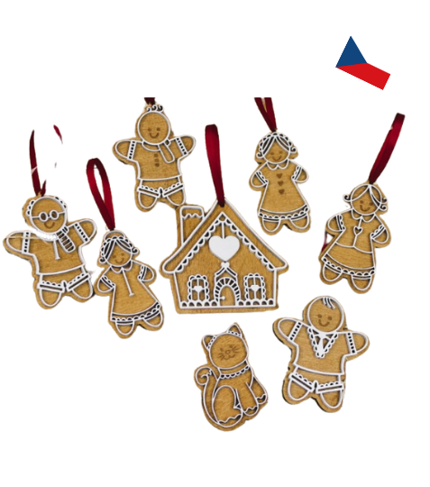 Ozdobte svůj vánoční stromeček kouzelnou vánoční atmosférou s našimi dřevěnými vánočními ozdobami ve stylu perníčků a domečku. Tyto ozdoby zaujmou detailním provedením.