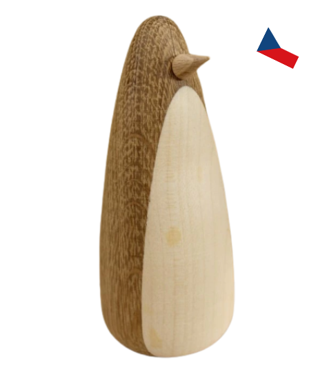 Každý tučňák se díky ručnímu zpracování a přirozené kresbě dřeva mírně liší, což zaručuje jeho jedinečnost.