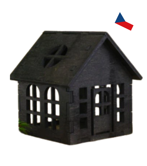 Tento černý dřevěný domeček přinese kouzlo a eleganci do Vašeho domova. Je skvělým doplňkem k vánoční výzdobě a vynikne v každém interiéru, dodá mu jedinečný nádech klidu a harmonie. Vyroben s láskou z kvalitního dřeva, s pečlivým důrazem na každý detail, tento domeček může posloužit jako svícen nebo jen jako okouzlující dekorace na Váš stůl či polici.