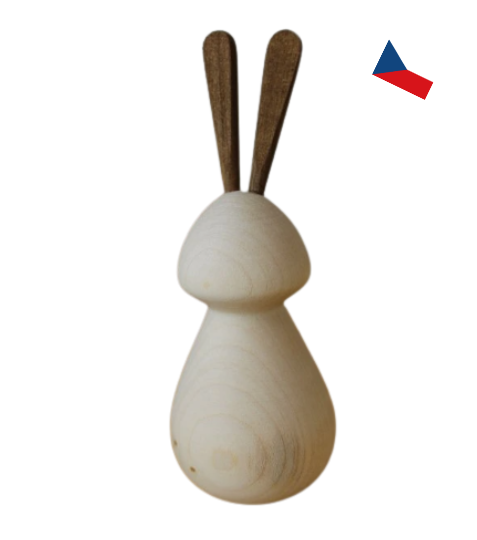 Tento dřevěný zajíček s tmavými oušky je jedinečnou kombinací přírodního designu a elegance. Ručně vyráběný z masivního dřeva, dokonale vynikne jako dekorace na velikonoční stůl, do moderního interiéru nebo dětského pokoje. Díky minimalistickému vzhledu a jemným detailům se stane oblíbeným doplňkem každého domova.