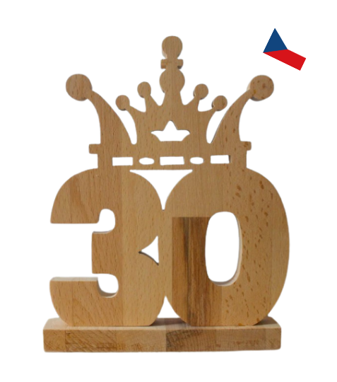 Dřevěná narozeninová dekorace ve tvaru korunky z bukové spárovky.