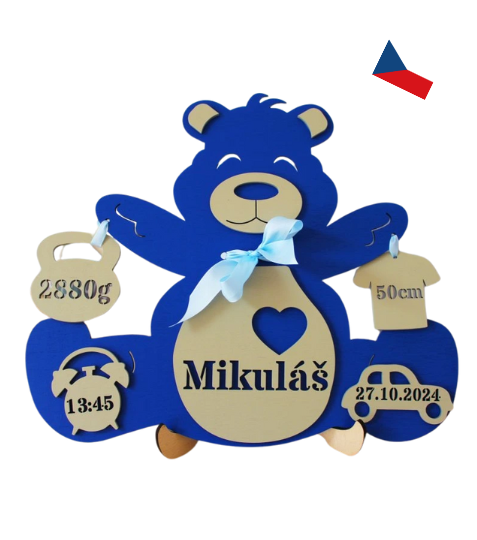JH WoodArt Pamětní dřevěný medvídek – originální dárek pro novorozence Světle modro - BíláSkladem771 Kč/ ks637,19 Kč bez DPH