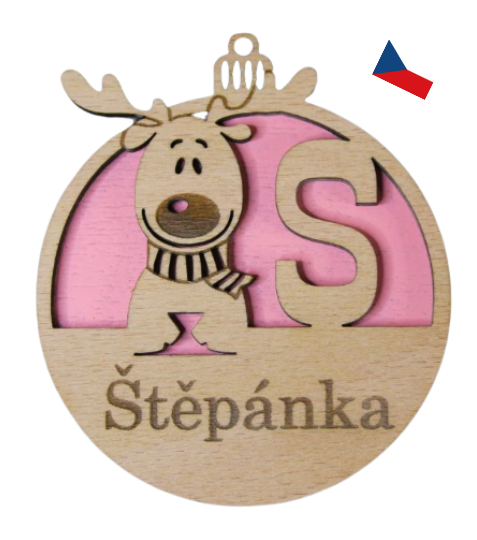 Představujeme vám roztomilého sobíka s vygravírovaným jménem. Originální dřevěnou dekoraci, která ozdobí váš stromeček nebo potěší jako dárek! Vyrobena z kvalitního dřeva, s jemným růžovým podkladem, tahle ozdoba je nejen stylová, ale také jedinečná.