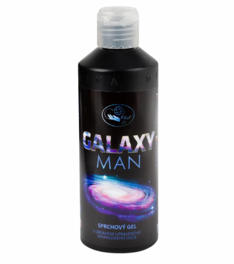 Galaxy man sprchový gel s obsahem upraveného mandlového oleje. Mandlový olej působí na zjemnění pokožky. Gel je jemně parfemovaný. Skupina vůně: sladká, mořská, dřevitá, moušusová, citron, bergamot, mořské tóny Pačule, cedrové dřevo, vanilka, ambra.