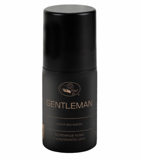 Gentleman ledový deo parfém - Zabraňuje rozkládání potu a vytváření nepříjemného zápachu. Neobsahuje hliník ani konzervační látky. Pánská, velmi hravá vůně s tóny koriandru, bergamotu, mandarinky, podtržena vzdušnou notou levandule, ukotvena v podtónech cedrového a santalového dřeva.