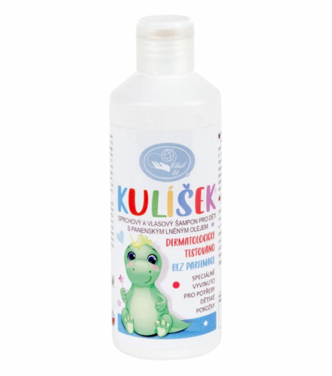 Kulíšek je koncentrovaný sprchový a vlasový šampon pro děti, vyvinutý speciálně s ohledem na jemnou a citlivou pokožku našich nejmenších. Díky panenskému lněnému oleji a jemným kokosovým derivátům pomáhá zklidnit i problematickou a ekzémovou kůži. Jeho pH odpovídá zdravé dětské pokožce, takže nedráždí, nevysušuje a je vhodný i pro každodenní použití. Jemný melounový parfém byl specielně vyvinut pro dětskou kosmetiku a neobsahuje alergenní látky. Maminky potvrzují zklidnění opruzenin, vymizení ekzémových projevů i hladkou pokožku bez nutnosti dalších mastí. Kulíšek krásně pění a neštípe do očí. Praktický je i pro dospělé s citlivou nebo suchou kůží. Je tak jemný, že ho s oblibou používají i babičky a rodiče jako univerzální sprchový gel a šampon. A navíc? Po koupeli nezanechává usazeniny – jen čistou vanu a ještě čistší svědomí.